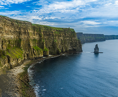 Encounter a moment of magic as you stand atop these awe-inspiring, rigid cliffs with edges dropping into the untamed Atlantic Ocean. Stretching 8km (or 5 miles) along the Atlantic coast of County Clare, The Cliffs of Moher stand 700 feet tall. Visitors are welcome to explore the walking paths along the most outstanding landscape in Ireland and experience the infamous Wild Atlantic Way first-hand.